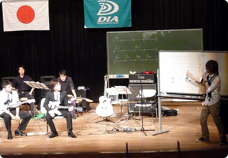 大阪・京都・神戸・奈良・滋賀 といった関西一帯の地区で、 ヤマハPMSギター講師として、 小学生から80代の方まで幅広く コーチングを活かしたレッスンを行う。 2012年には300人規模のホールで、 初心者のための ギターセミナーなどを開催。 劇団MicroToMacroの バックバンドとしても舞台公演を行う。 現在は自身の運営する ギター教室imusiclabo で後進の指導に励む一方で、 夢を叶えるためのお手伝いや コーチングの普及活動など、 プロのコーチとしても 全国で精力的に活動を行っている。 |